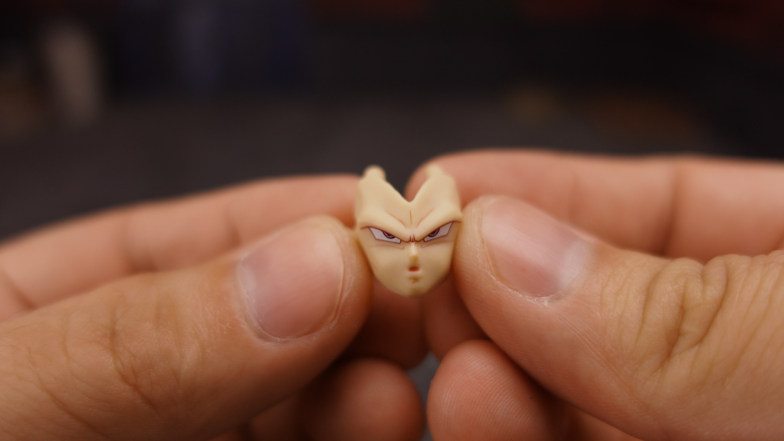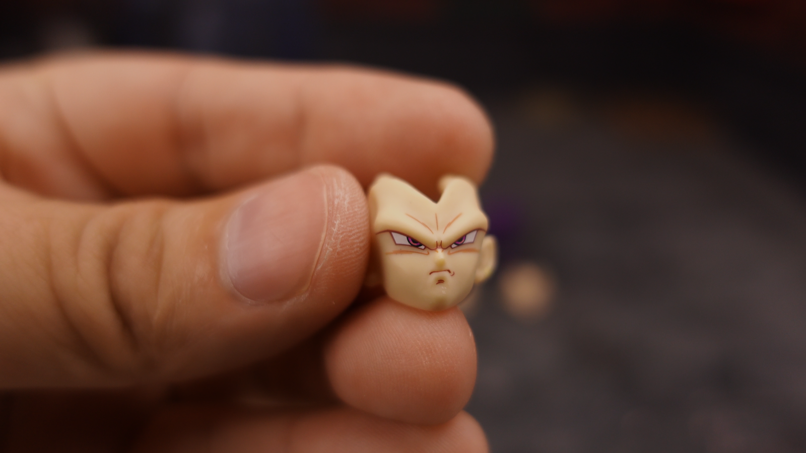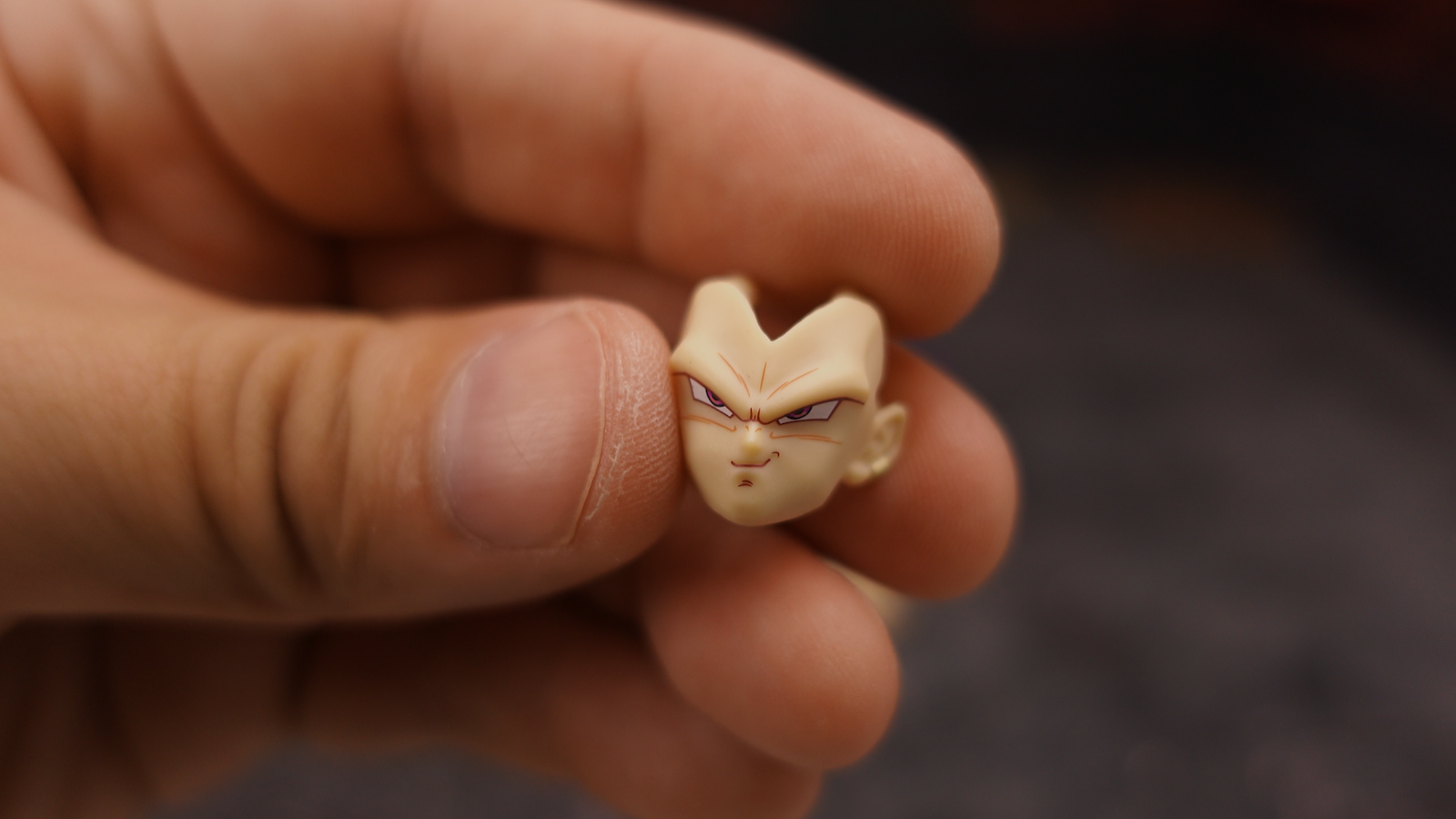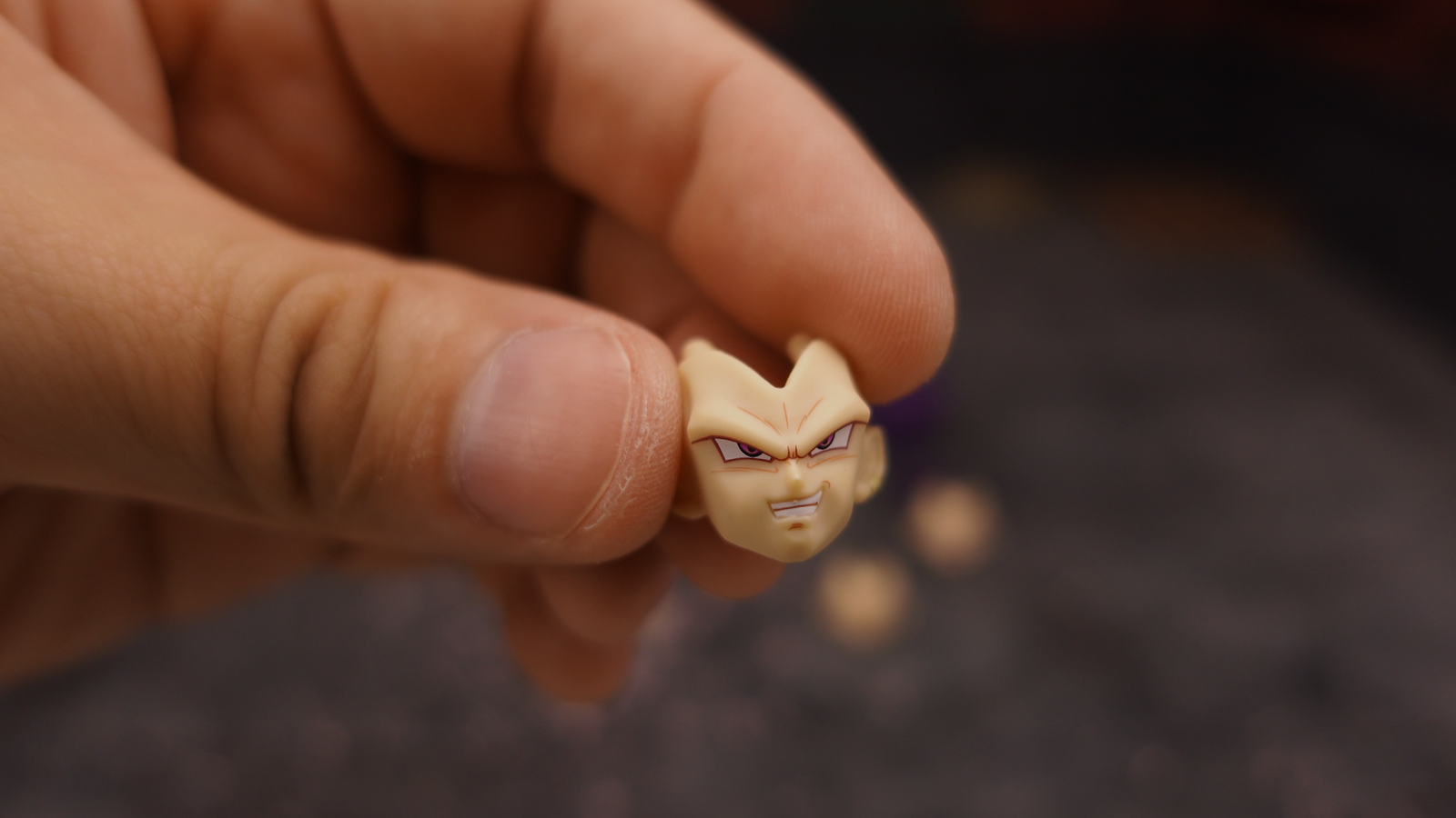 Expresividad Salvaje: Los 6 rostros logran un likeness espectacular. Capturan a la perfección la falta de cejas y la arrogancia de Vegeta en su límite.