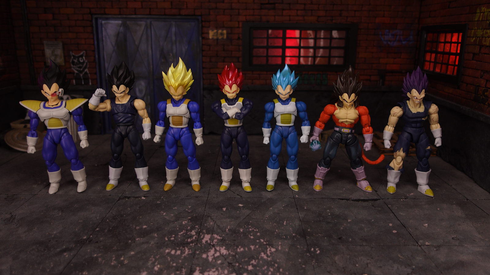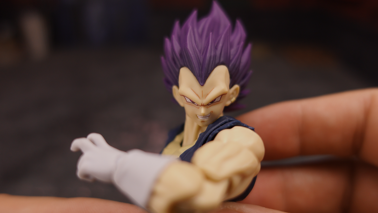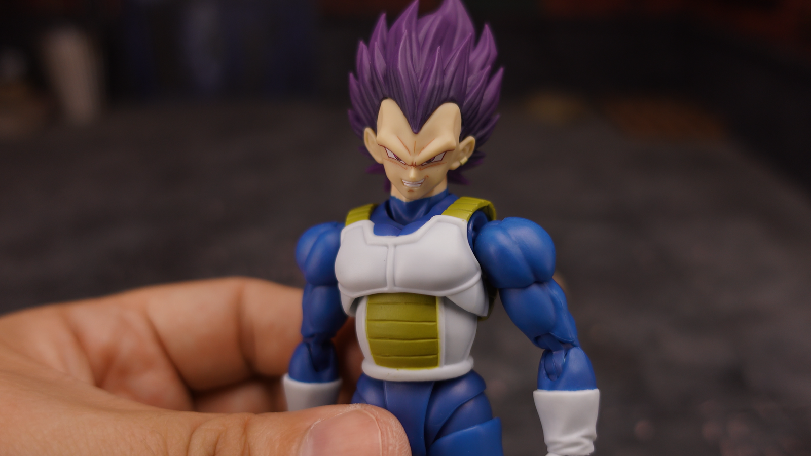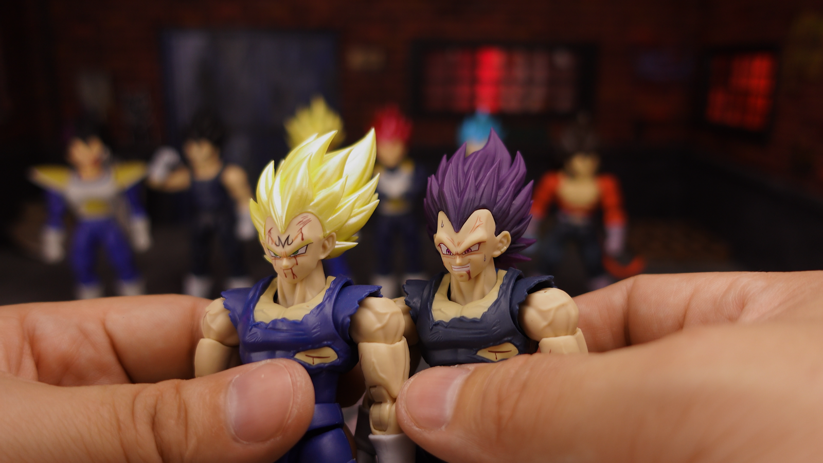 Expresividad Salvaje: Los 6 rostros logran un likeness espectacular. Capturan a la perfección la falta de cejas y la arrogancia de Vegeta en su límite.