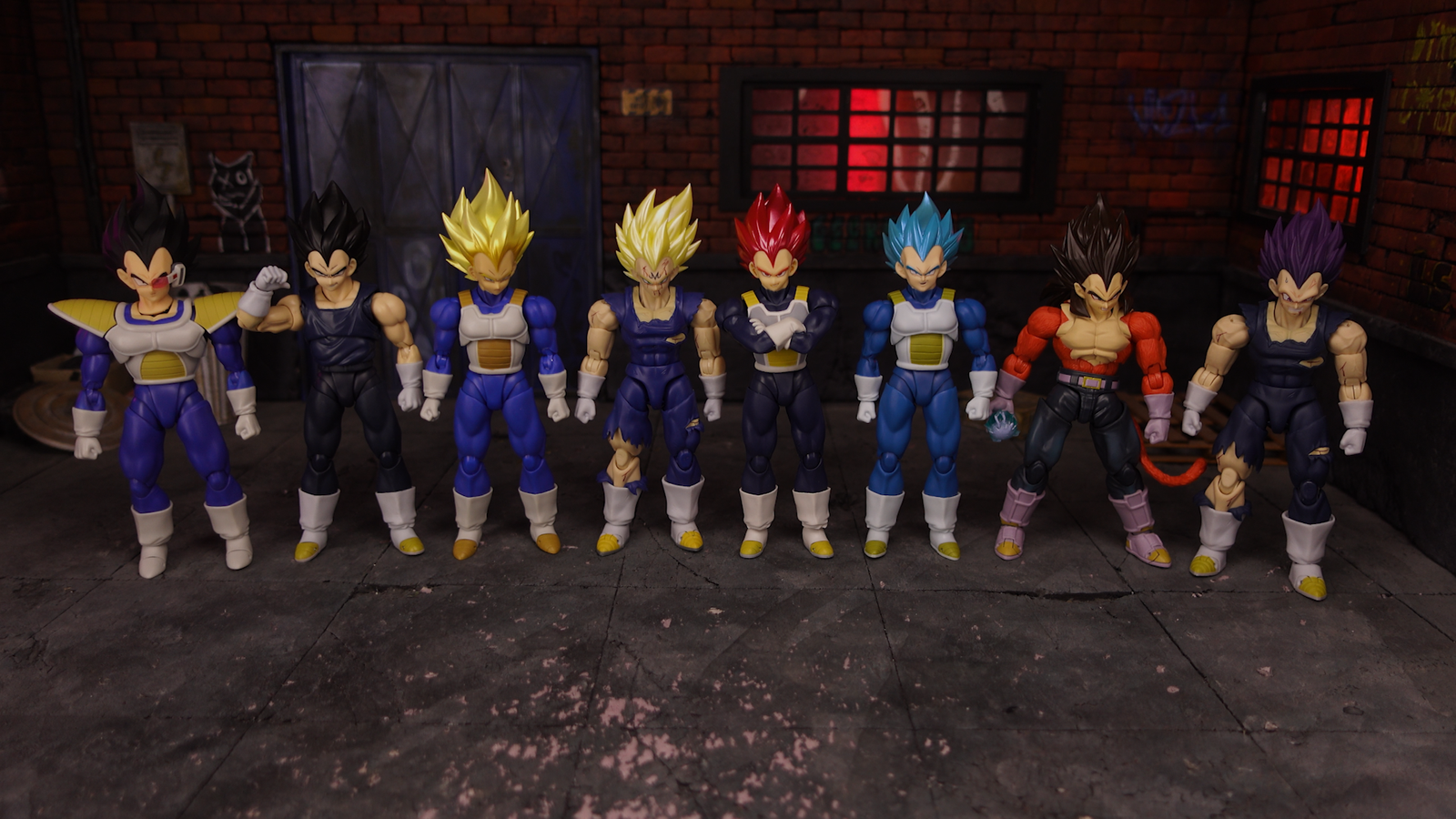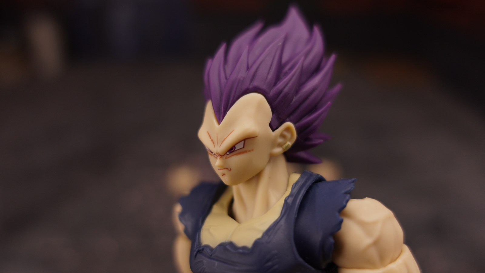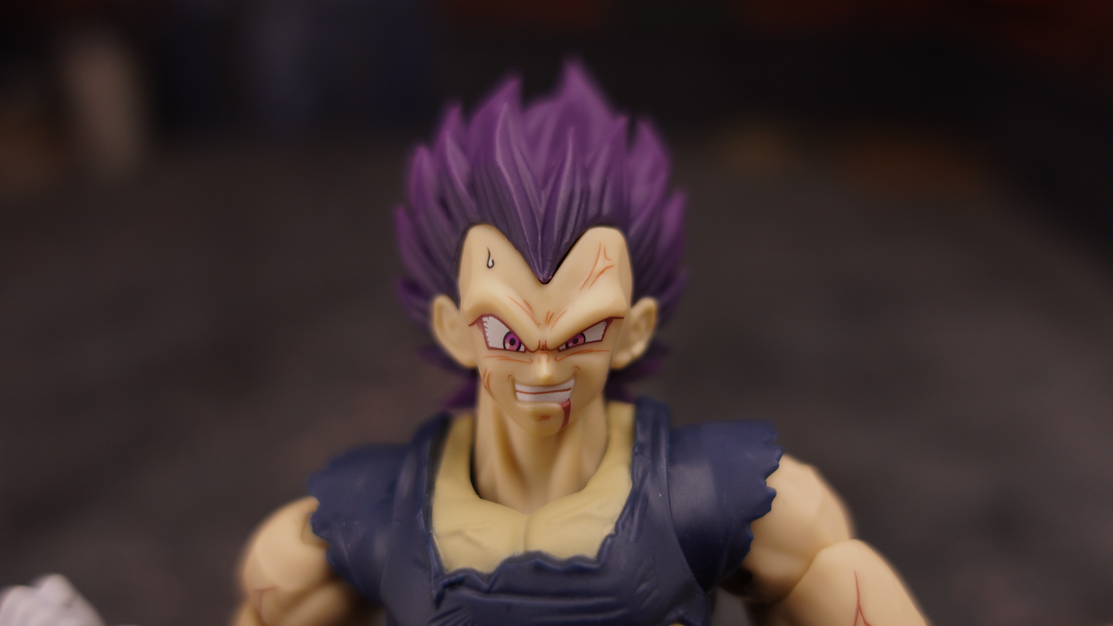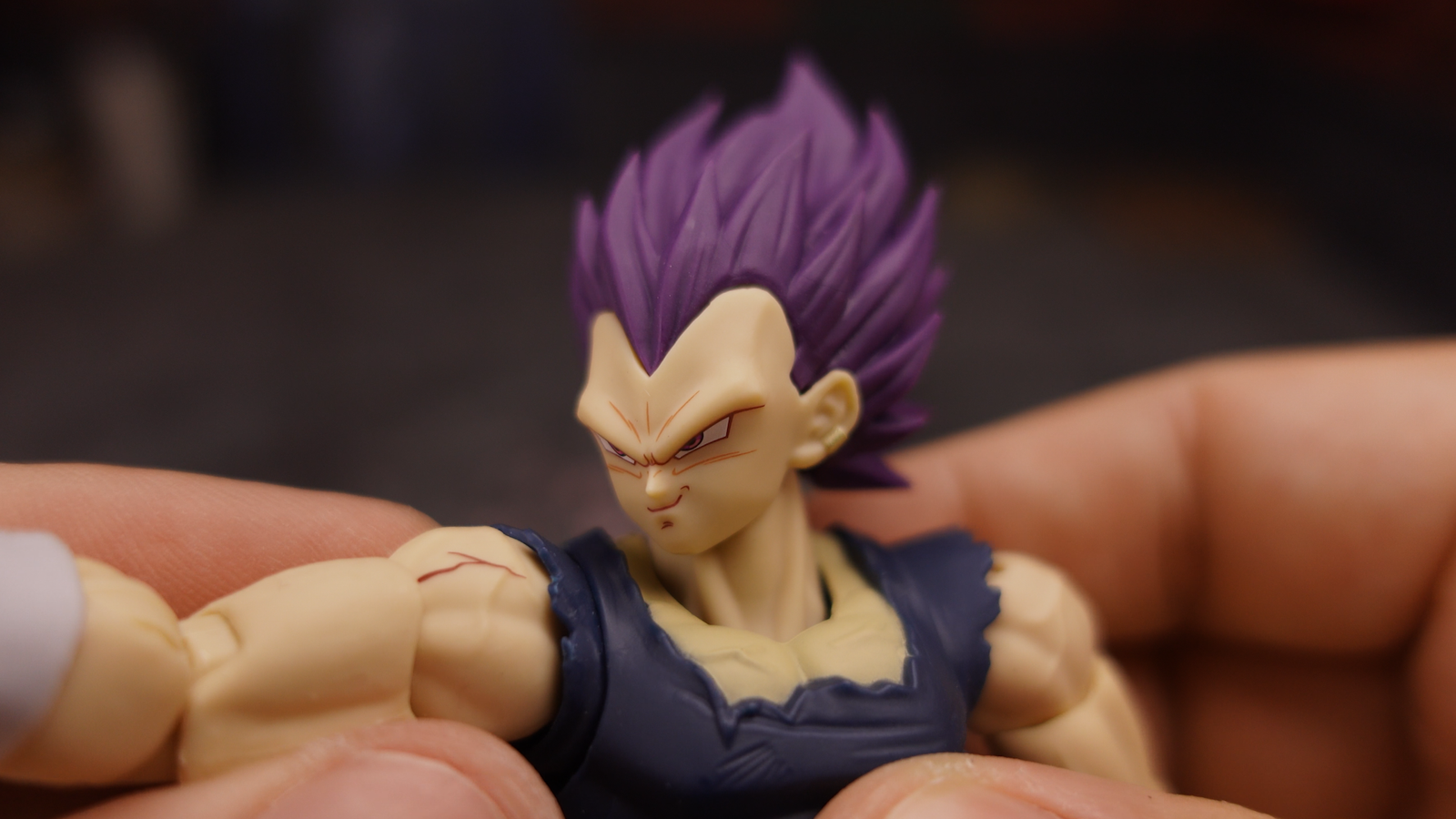 Expresividad Salvaje: Los 6 rostros logran un likeness espectacular. Capturan a la perfección la falta de cejas y la arrogancia de Vegeta en su límite.
