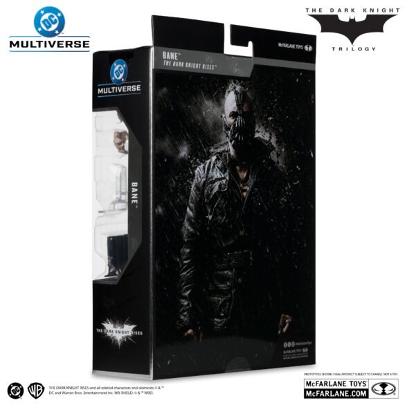 El hombre que «rompió al murciélago» llega con una presencia física imponente. Aunque comparte escala con las otras figuras, el volumen de Bane siempre destaca.