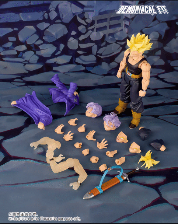 A nivel visual, se percibe como una evolución directa del Trunks que ya conocemos, con claras inspiraciones en propuestas recientes de Tamashii Nations, pero manteniendo el enfoque característico de Demoniacal Fit: abundancia de accesorios y alta versatilidad.